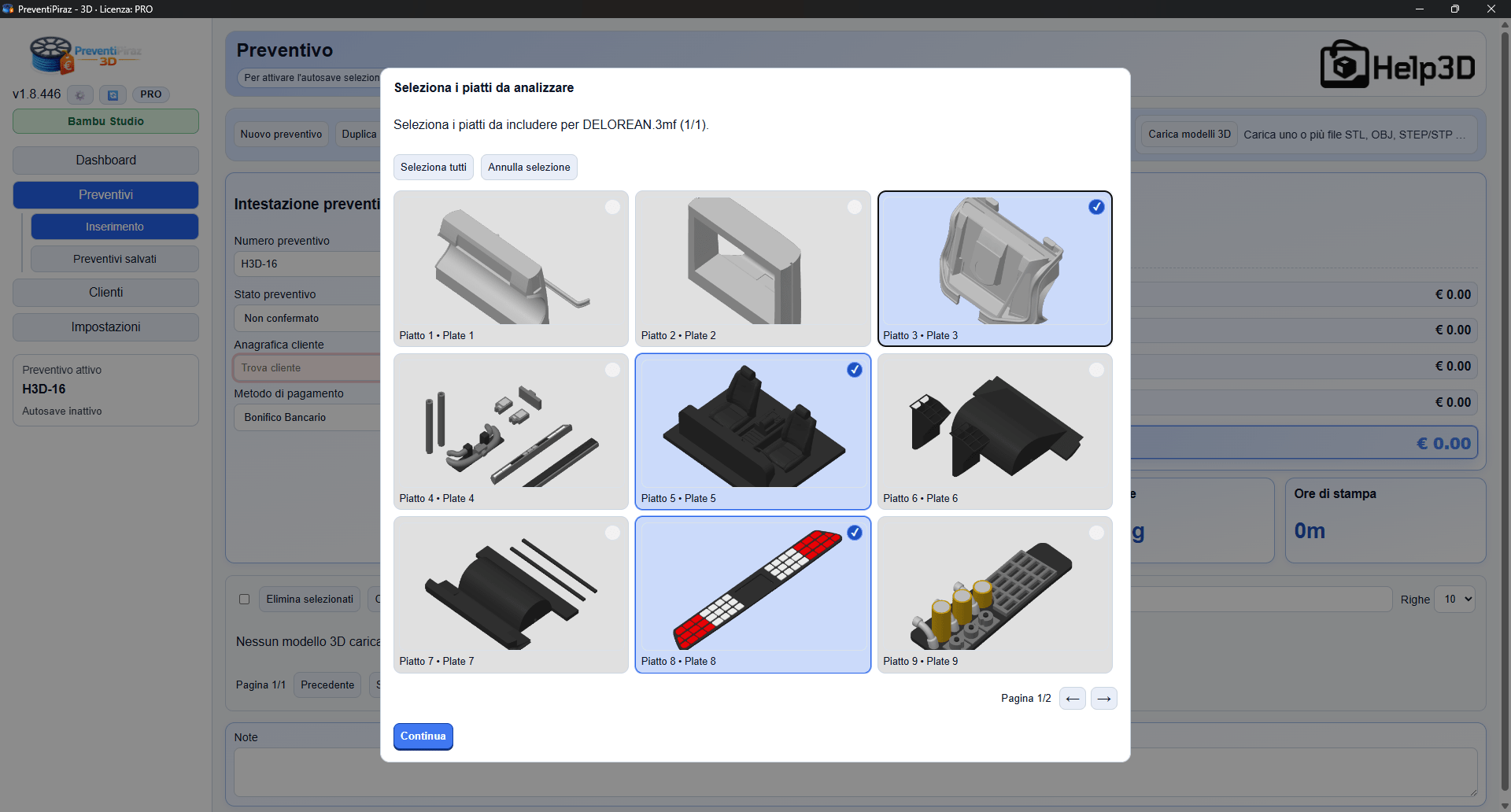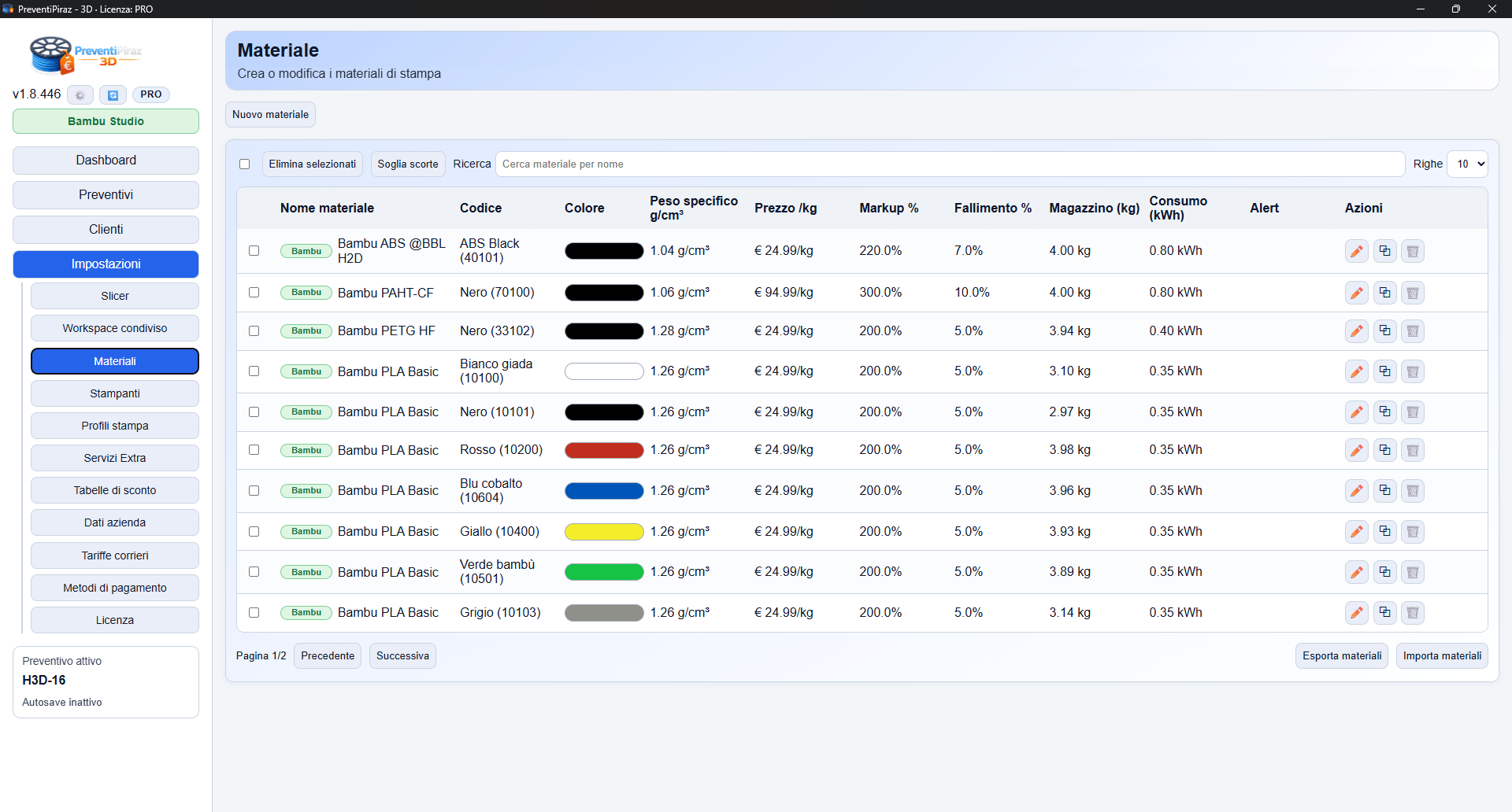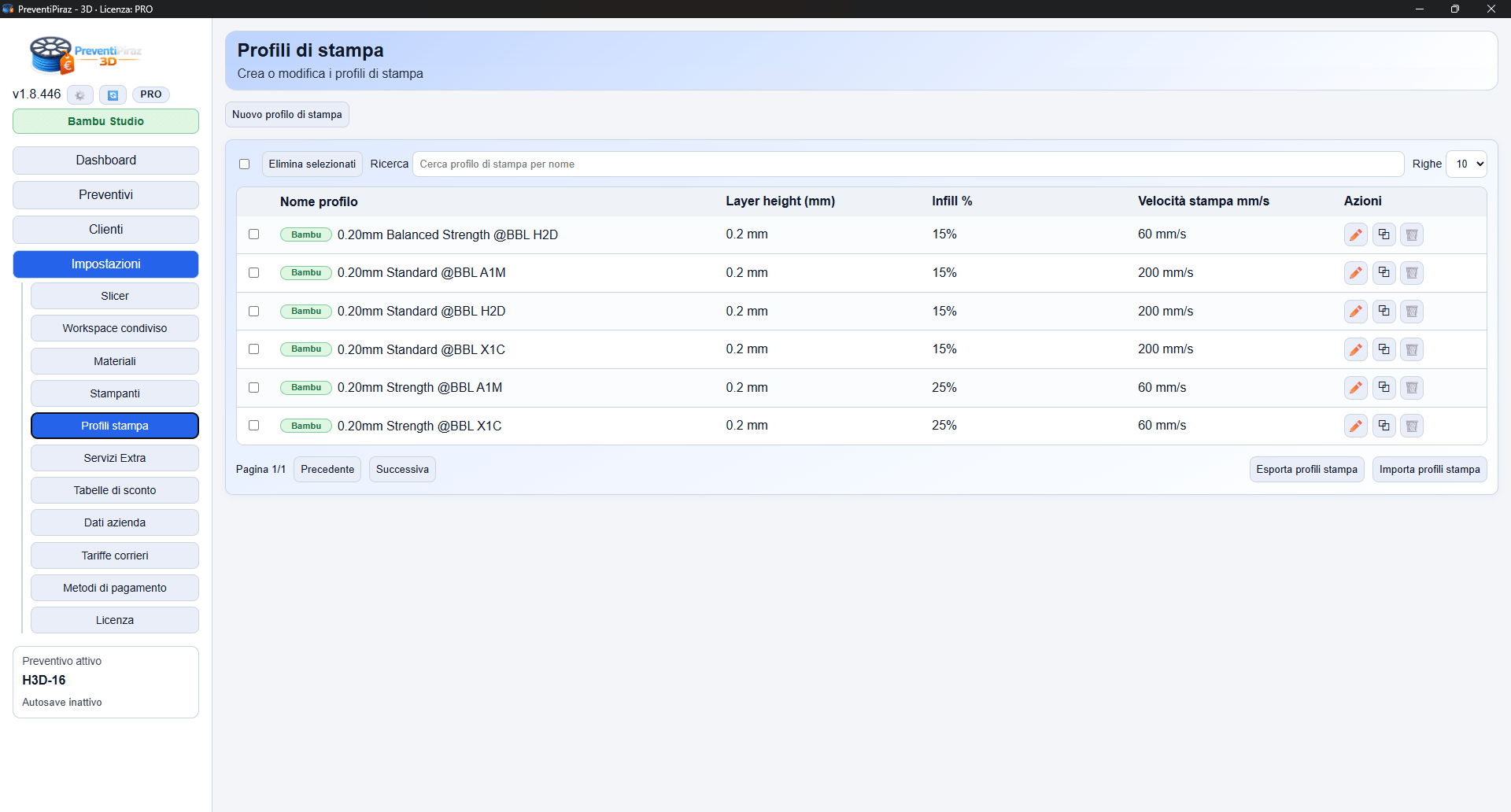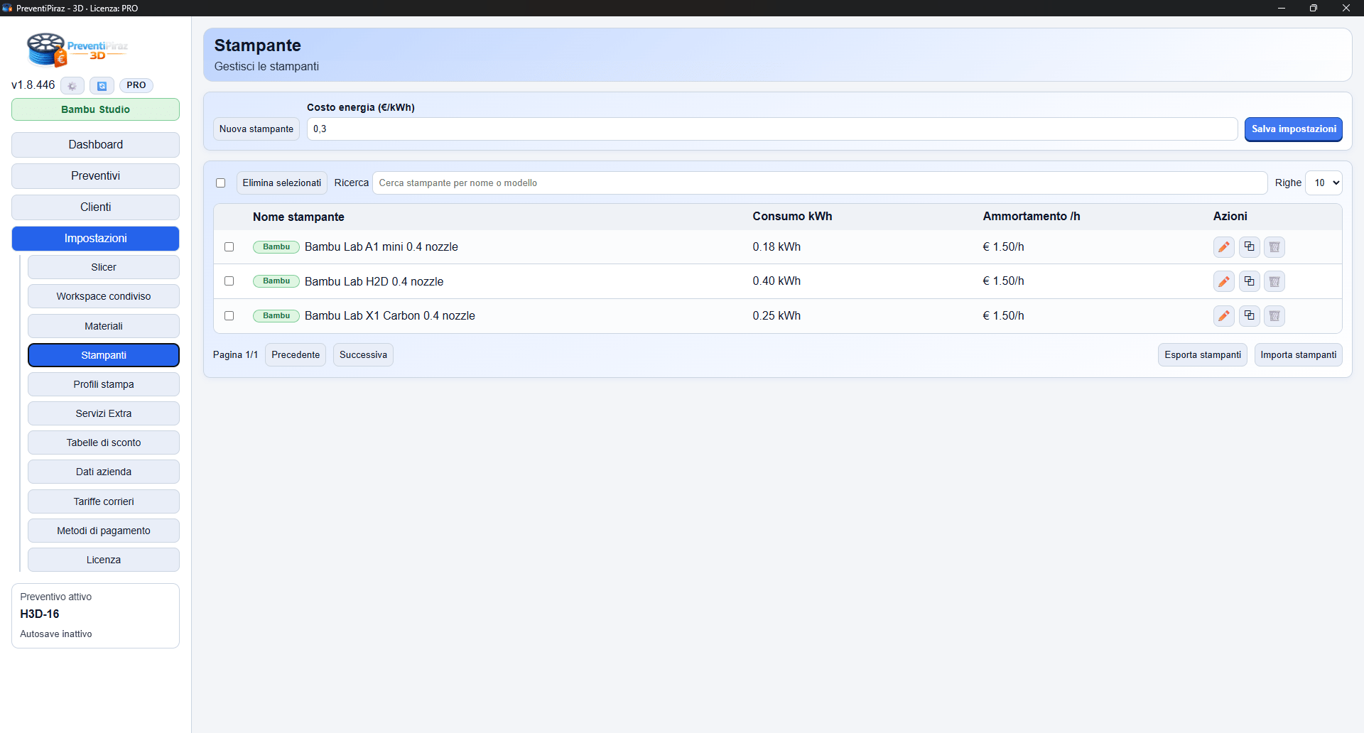 PreventiPiraz 3D è il primo software al mondo ad aver integrato un calcolo ESATTO del preventivo basandosi su uno slicer, evitando all’utente di dover inserire ogni volta pesi e tempi a mano.