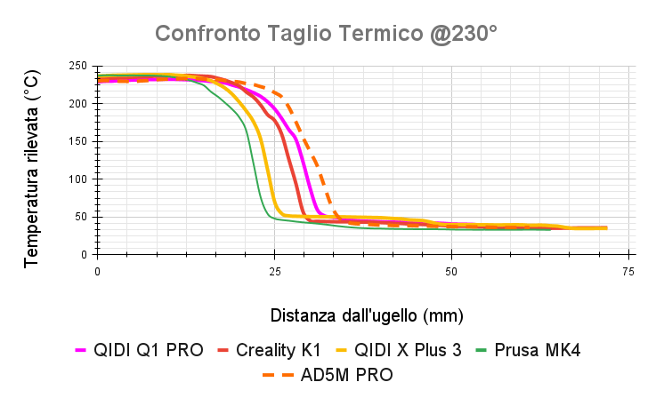 Come vedi sono tutte perfettamente allineate, Bambu Lab un po’ sopra la media ma la differenza è giustificata. Parere puramente ==PERSONALE==, metto la 5MPRO subito sotto la Bambu Lab ma davanti alla Creality. Se solo le avessero messo un hotend da >300° sarebbe stata perfetta ma oggettivamente per questo prezzo, prestazioni offerte e qualità costruttiva c’è poco da dire.