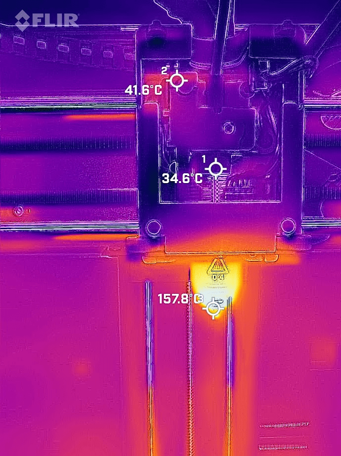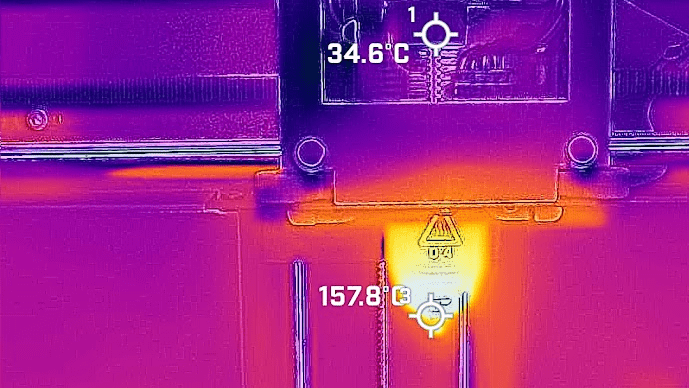 Ho testato l’uniformità di riscaldamento a varie temperature e non ho notato nulla di strano, solo un valore leggermente inferiore a quanto segnato da LCD (a 130° sono circa 8° in meno). Il riscaldamento è affidato ad un pad a 24V ed è molto veloce da T ambiente a 60°, mentre ci vuole qualche minuto per arrivare a 120°.
